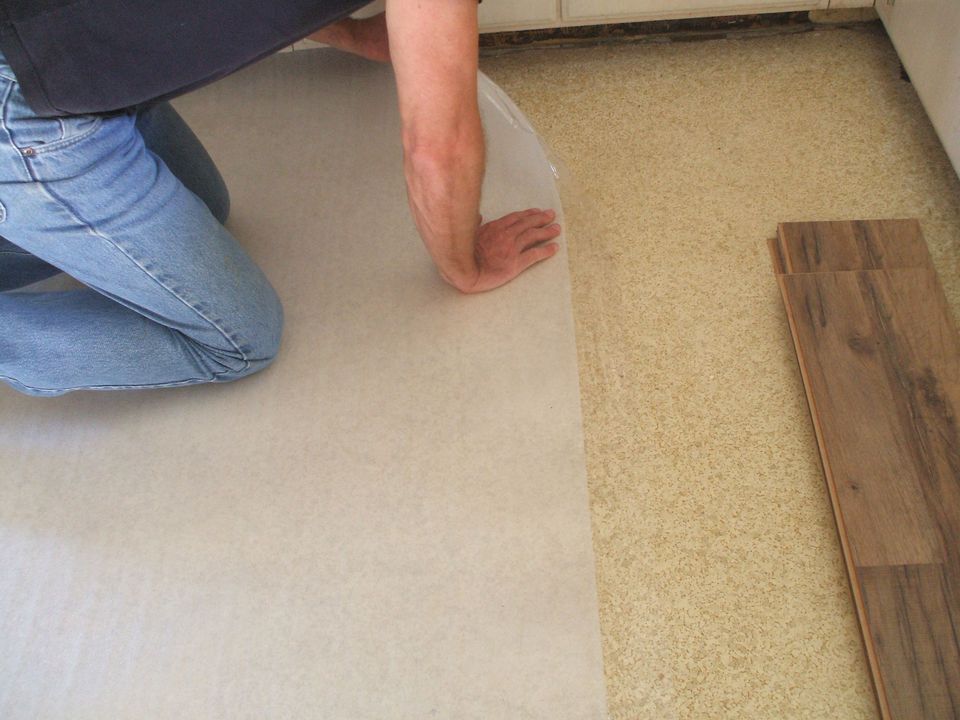 Flooring manufacturers always recommend putting down underlayment before laying the laminate. This thin foam helps to absorb sound; provides a thermal barrier; makes it easier to walk on the laminate, and helps the flooring bridge minor gaps and bumps.