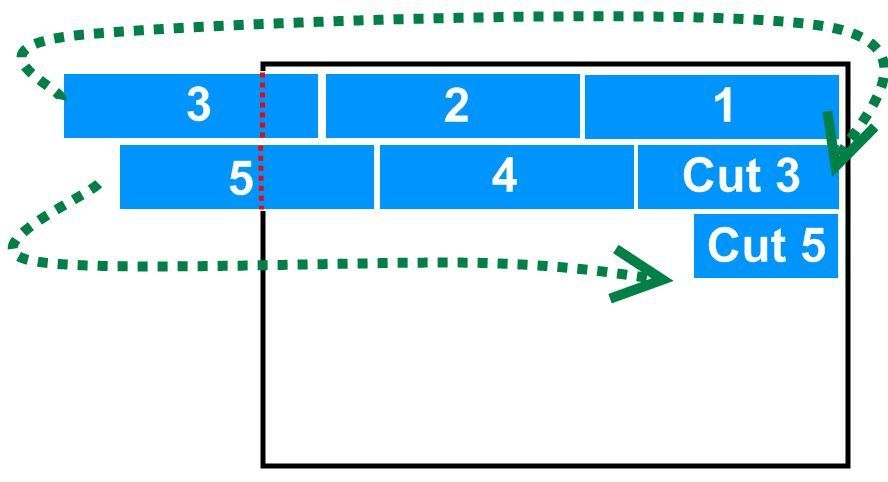 That cut-off piece will be shifted down to the next row, moving it all the way to the right to start that row.
