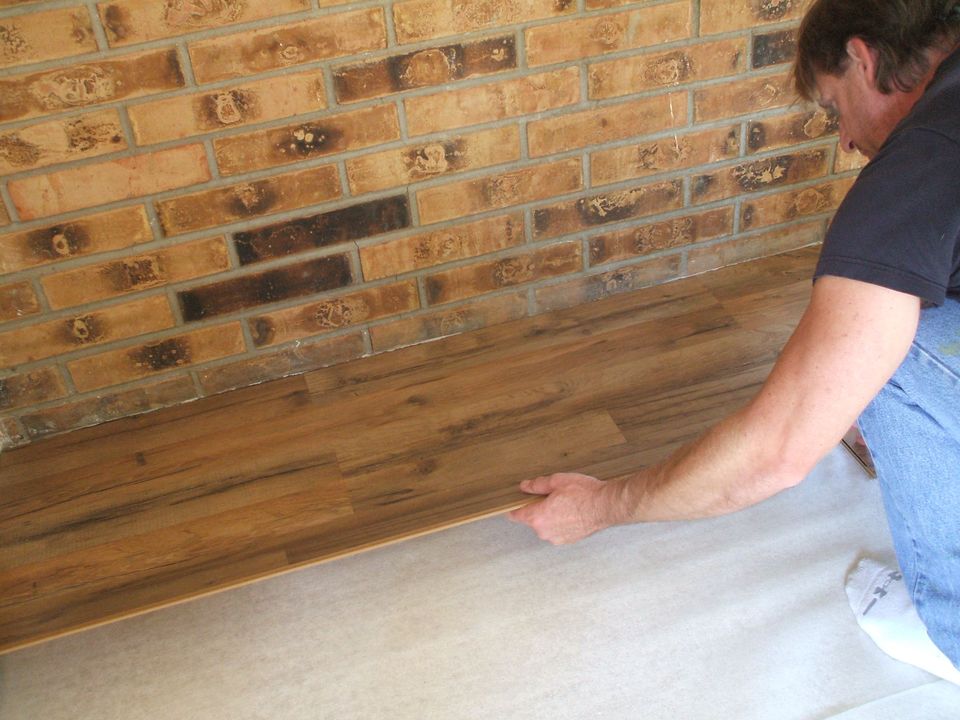 Begin your first row on the longest wall, with the former tongue side against the wall. Start on the right side and work leftward.