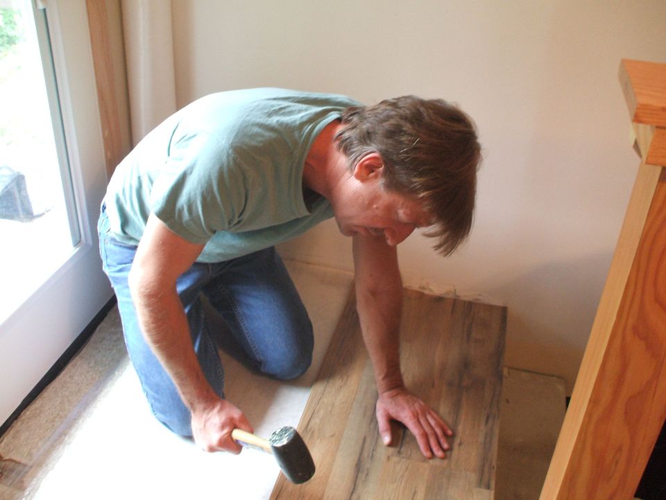 Rap the the seam firmly and decisively with your rubber mallet, just two or three sharp raps. If it takes more than about three strikes, the plank ends are too tightly fitted. You may damage the planks if you rap more.