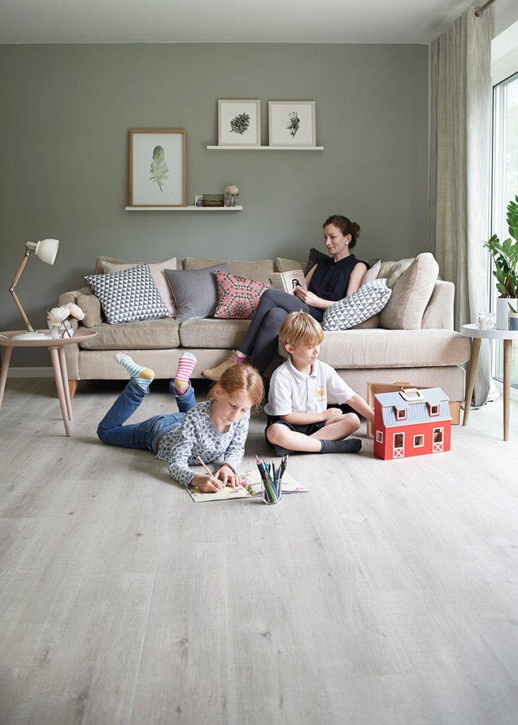 SPC floor surface has been managed to use a special process, and is easy to clean. Usually, it just uses a normal mop to clean it. Even naughty children graffiti on the floor with a watercolor pen, you can also use a damp cloth to clean. Let the children grow up happily and freely at home.