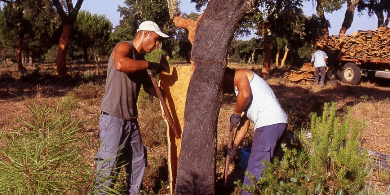 Cork can be harvested every 9-12 years, at about the same rate as hardwood. Cork Oak forests produce oxygen, prevent soil erosion and are home to a multitude of wild animals. The cork is harvested by hand with small axes, after the bark has already cracked to prevent damaging the tree. The process is very non-invasive and mimics bark stripping that may occur naturally.
